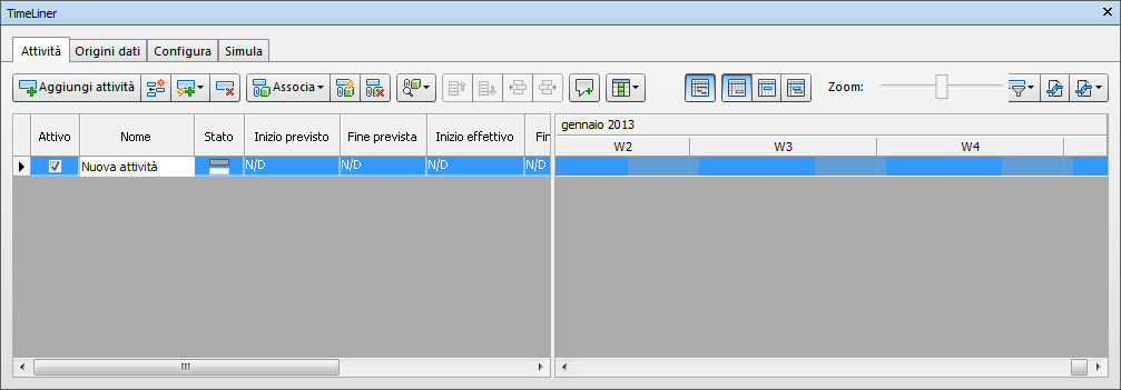 , quindi fare clic sulla scheda Attività della finestra TimeLiner.