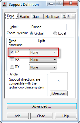 4. In the Rigid tab, ensure that Fixed directions UZ is selected.