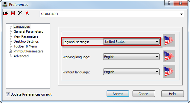 Note: The Regional settings set the default databases (for profiles, and materials), as well as the units and national codes to the standards of a country.
