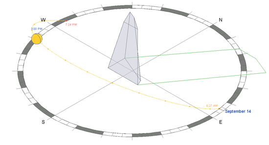 In this example, the extrusion analyzer is used to calculate and outline a shadow formed from the input solid and the sun direction.