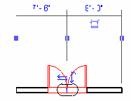 The following figure shows a room boundary selected in the Revit UI: