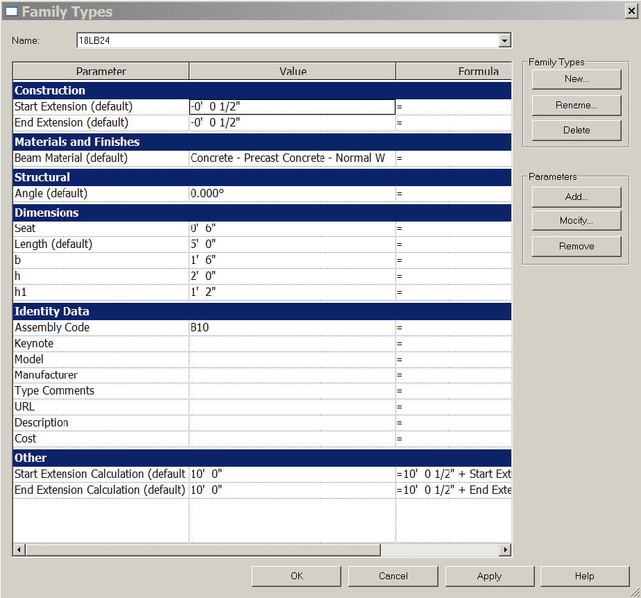 Figure 184: Precast-L Shaped Beam Properties