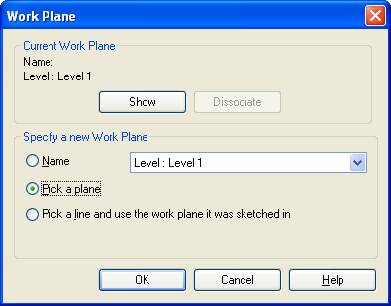 When you specify a new work plane, you can select Pick a plane as illustrated in the previous picture. After you pick a plane, select a plane on a particular element such as a wall as the following picture shows. In this case, the SketchPlane.Name property returns a string related to that element. For example, in the following picture, the SketchPlane.Name property returns 'Generic - 8' the same as the Wall.Name property.