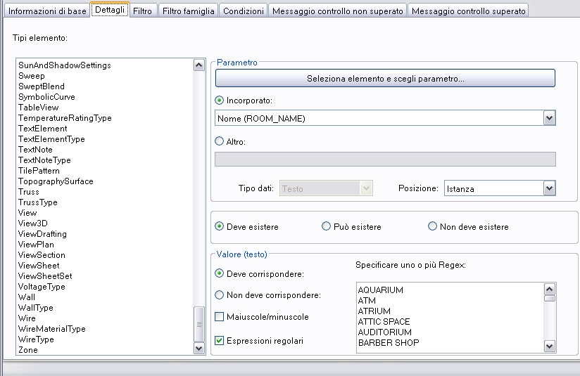 La scheda Dettagli consente di determinare gli elementi che verranno verificati mediante i singoli controlli in Model Review.