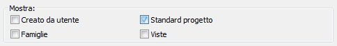 - Standard di progetto. Contiene tutte le impostazioni relative all'intero progetto, ad esempio stili di linea e retini. Non è consentito rinominare o eliminare i workset degli standard di progetto.