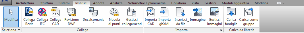 La barra multifunzione viene visualizzata quando si crea o si apre un file e fornisce accesso a tutti gli strumenti necessari alla creazione di un progetto o di una famiglia.