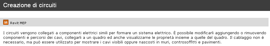 In questo esempio la legenda indica che l'intero argomento è valido per Revit MEP e per le funzionalità di Autodesk Revit associate a MEP.