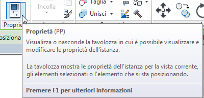 In Revit LT, quando si posiziona il cursore su uno strumento della barra multifunzione, viene visualizzata per default una descrizione del comando. La descrizione del comando fornisce informazioni sullo strumento. Se si mantiene il cursore sulla barra multifunzione ancora per qualche istante, vengono visualizzate eventuali informazioni aggiuntive. Quando è visualizzata la descrizione di un comando, è possibile premere F1 per accedere alla sezione della Guida in linea relativa allo strumento specifico.