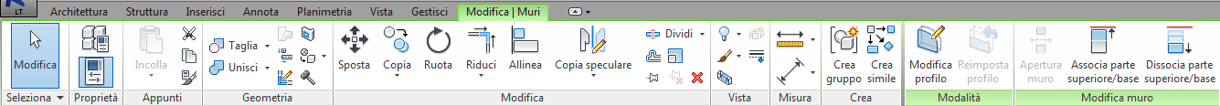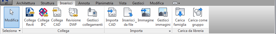 La barra multifunzione viene visualizzata quando si crea o si apre un file e fornisce accesso a tutti gli strumenti necessari alla creazione di un progetto o di una famiglia.
