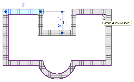 Se più elementi, ad esempio muri e/o linee, sono uniti e formano una catena continua, è possibile selezionare parte della catena.