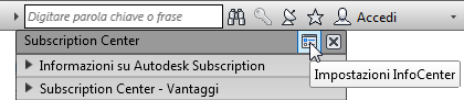 InfoCenter è costituito da un insieme di strumenti sul lato destro della barra del titolo che consentono di accedere a varie di fonti di informazione relative ai prodotti.