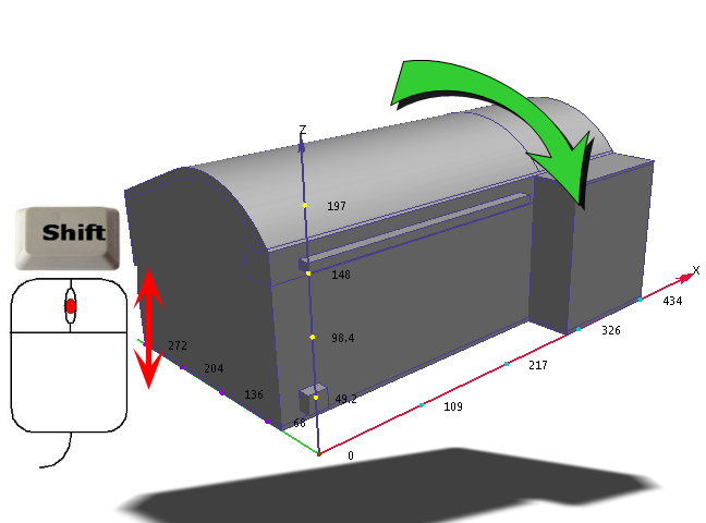 1. Per ruotare il modello, tenere premuto il tasto MAIUSC (sulla tastiera) e il pulsante centrale del mouse mentre si sposta il mouse: