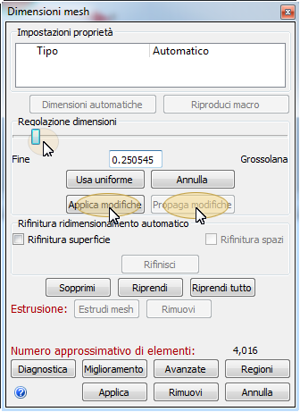 Per modificare il dimensionamento della mesh, effettuare UNA delle seguenti operazioni: