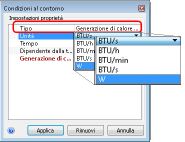 5. Verificare che l'opzione Tipo sia impostata su Generazione di calore totale. Inoltre, è possibile impostare le unità su watt selezionando W nella riga Unità.