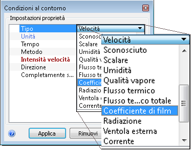 10. Nella riga Tipo, selezionare Coefficiente di film.