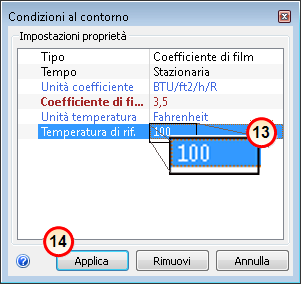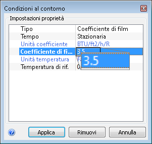 12. Nella riga Coefficiente di film, immettere 3.5.
