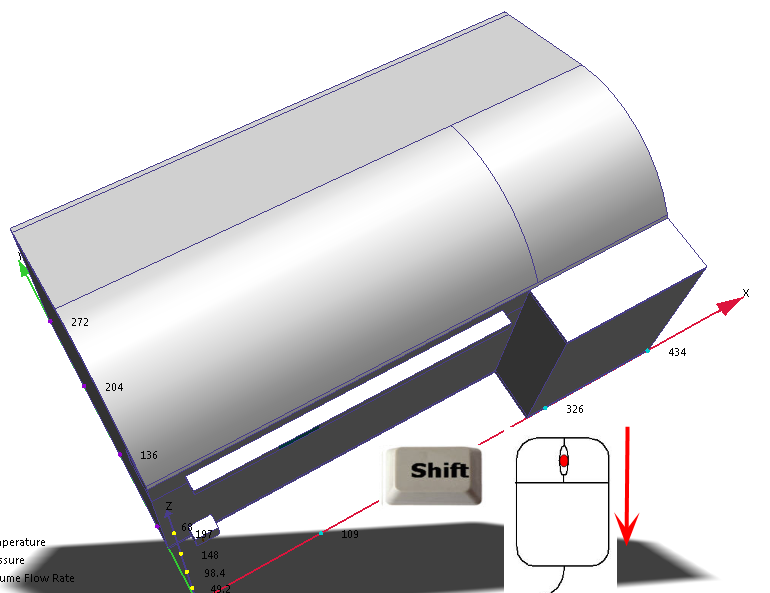 5. Ruotare il modello in modo da visualizzare le superfici sul lato anteriore (opposto a supply and return) dell'area di ingresso.