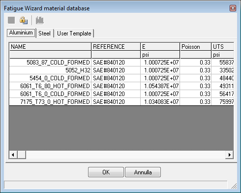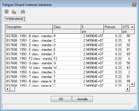 Selezionare rispettivamente Carica dati del materiale principale dal database, Dati del materiale di saldatura o Dati S-N definiti dall'utente .