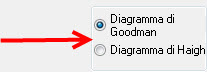 Sono disponibili due metodi per calcolare un fattore di sicurezza della fatica. È possibile selezionare un diagramma di Goodman di base o un metodo più avanzato in cui definire un diagramma di Haigh (con maggiore flessibilità).