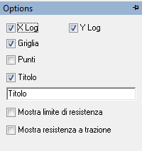 È inoltre possibile scegliere se includere una griglia, contrassegnare tutti i punti dati o contrassegnare i punti dati di resistenza a trazione o di limite di resistenza. Infine, in questa scheda è possibile specificare un titolo per la curva SN.