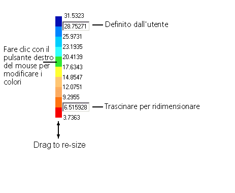In una visualizzazione del set di risultati contornati, una banda di contorno viene visualizzata sul lato destro della finestra. Le bande di contorno variano dal valore minimo al valore massimo dei dati del set di risultati. È possibile effettuare una personalizzazione come illustrato di seguito.