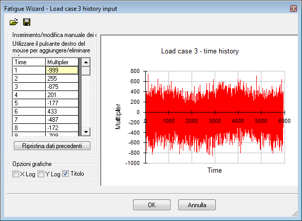 La Procedura guidata Fatica esegue una somma dei danni su tutte le ripetizioni di ciascun ciclo di sollecitazione definito dal file dello spettro.