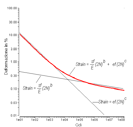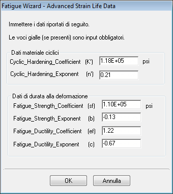Sono disponibili diversi metodi per approssimare i dati del materiale basati sulla deformazione a partire dai dati monotonici disponibili in maniera più rapida, come ad esempio la resistenza alla trazione, il modulo elastico e così via. Il metodo utilizzato nella Procedura guidata Fatica è lo stesso utilizzato da Seeger/Beste. È presente in molti testi sul calcolo della fatica basato sulla deformazione. In pratica questa tecnica consente di approssimare la curva della durata della deformazione (coefficienti basati sulla deformazione) mediante le seguenti formule: