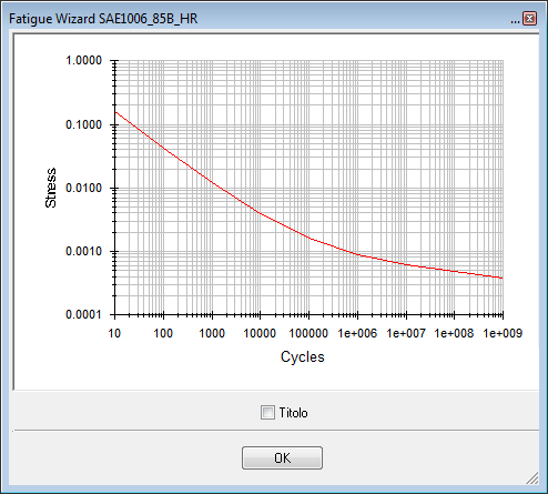 ) per visualizzare la curva di durata della deformazione. Questa azione è identica sia selezionando l'opzione dati S-N approssimati o avanzati. Nell'immagine seguente viene visualizzata una tipica curva.