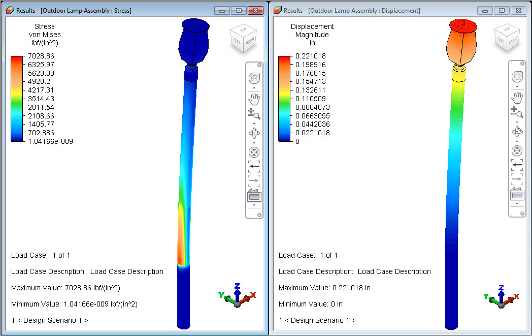 Here is an example of one-way FSI. Determine whether a product, in this case an outdoor lamp post, can withstand the wind loads experienced during severe weather conditions. In the CAD model, include a fluid region that encompasses the above-ground portion of the lamp post.
