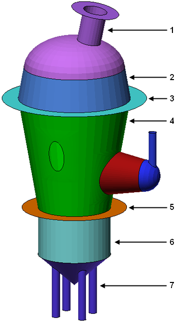 In many cases, complex vessels can be created with a single PVDesigner model by using a combination of the main cylinder, nozzles, heads, and nozzles on the heads. In other cases, multiple models can be created with PVDesigner and merged together in Autodesk Simulation. (Create each model separately, then use
