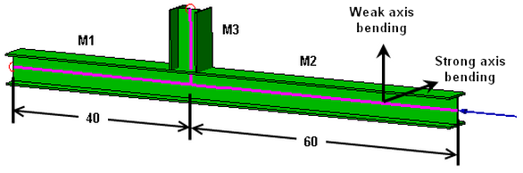 During code checking, multiple beam elements are combined into members, where the length of each member is used in the allowable stress calculations. The lengths for bending about the weak axis and about the strong axis are separate values.