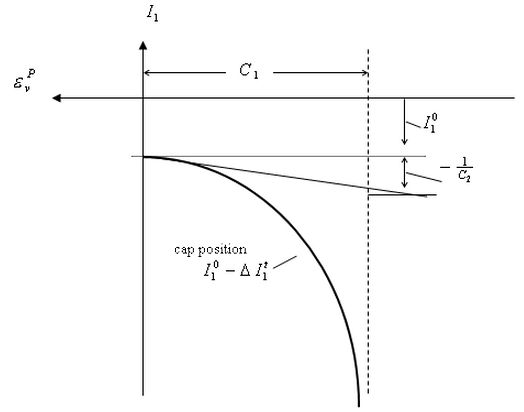 The physical meaning of the various cap function coefficients is shown in Fig. 3. From this figure, it may be seen that the coefficient C1 represents the maximum plastic volumetric strain the material could ever reach, and C2 gives a measurement of the cap position increasing rate.