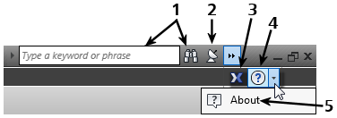 Note: The binoculars icon (item 1) opens the homepage of the product Help if nothing is entered in the search keyword field.