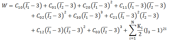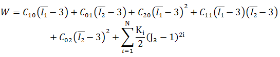 (Higher order material models, and the potential equations above, refer to the first and second constants as C10 and C01, respectively.)