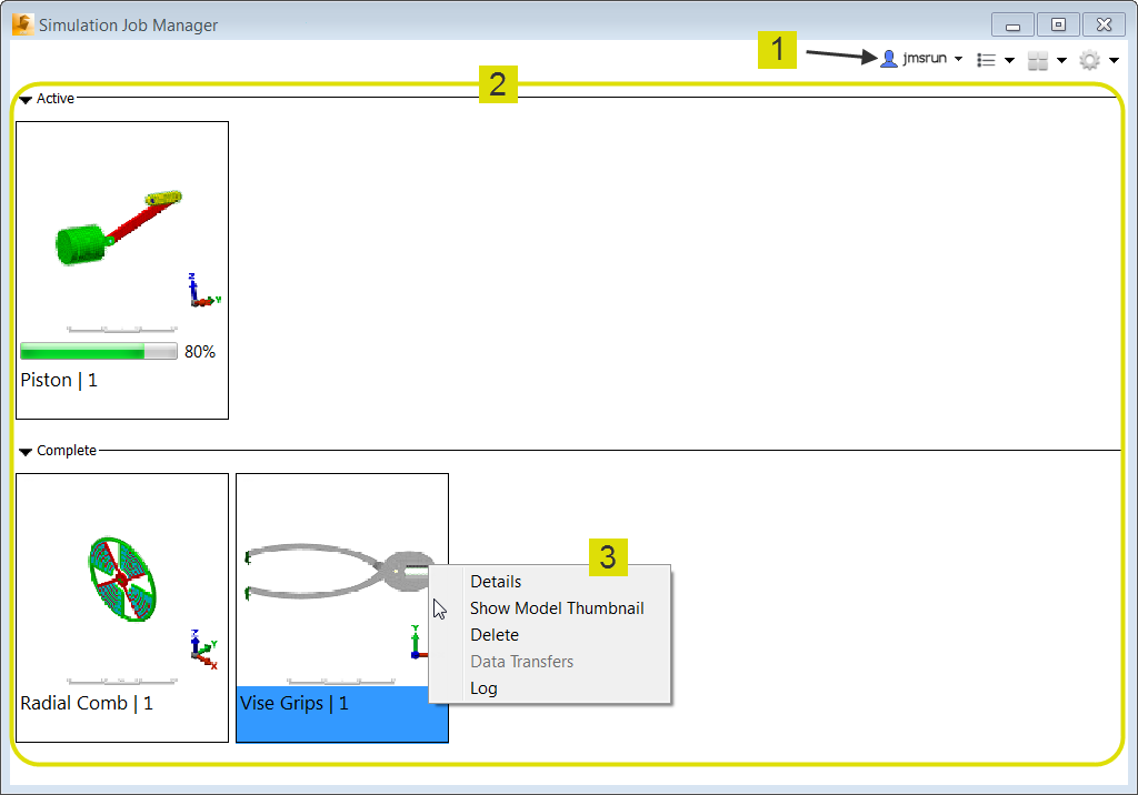 Figure 1: Simulation Job Manager (Medium Icon View Mode)