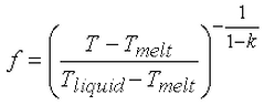 When the node is cooler than the solidus temperature, the fraction is equal to 0. When the node is warmer than the liquidus temperature, the fraction is equal to 1.