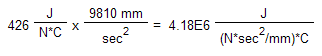 Similar conversions are required with metric units when the Model Units are changed from the base of Newton, meter, second, kilogram. For example, the specific heat of water is about 4180 J/(kg*C). If the units of length in the model are millimeters, the Model Units of mass are derived based on Newton, millimeter, and second. Thus, the mass in kilograms first needs to be converted to a weight, and then converted to consistent mass units.