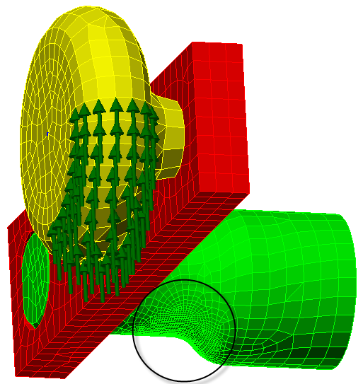 Often, critical stresses are limited to one or two small areas of a model. When Global Mesh Refinement is used, the resulting mesh is often finer than necessary because all elements are resized. A more efficient approach is to refine the mesh locally, only where the critical stress regions are. The Local Mesh Refinement command provides a semi-automatic means of performing this targeted mesh refinement on CAD-based models.