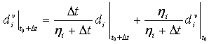 ηi is the viscosity coefficient representing the viscous system relaxation time, and di is the damage variable evaluated in the inviscid backbone model, where i denotes a damage mode (I through IV, or ft, fc, mt, and mc as appropriate to the variable). The regularized damage variable is updated as: