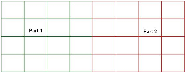It appears that the interface only consists of Part 2 lines. However, if we separate the two parts (as shown below), we see that each part has lines at the interface as desired. This is exactly how the interface of different part numbers should be modeled so that we have complete elements for Part 1 and Part 2.