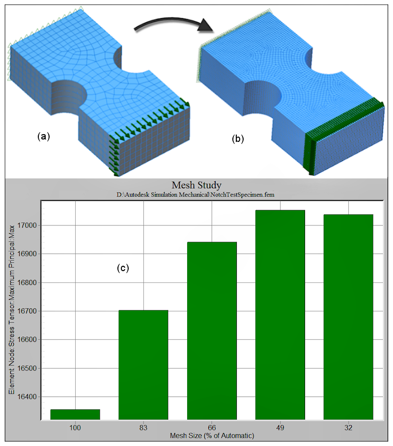 A common question in FEA is, what mesh size is required to get accurate results? When working with a CAD model, the Global Mesh Refinement command can be used to answer that question. This command accesses the Mesh Study Wizard, which automates the following tasks: