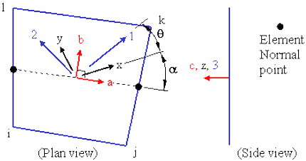 2D, Membrane, and Shell (except for Composite) The local 1 axis is parallel to the i-j side.