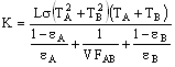Where T A and T B are the temperatures of surfaces A and B (in absolute temperatures), ε A and ε B are the emissivities of surfaces A and B, and VF AB is the view factor between the two surfaces.