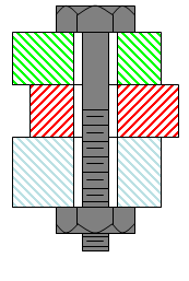 The bolt is threaded (tight fit) into the bottom part (extra bolt elements connect the shank to the hole).