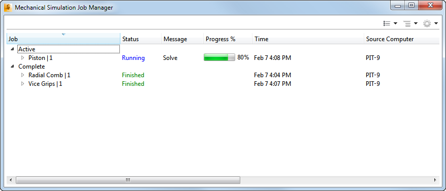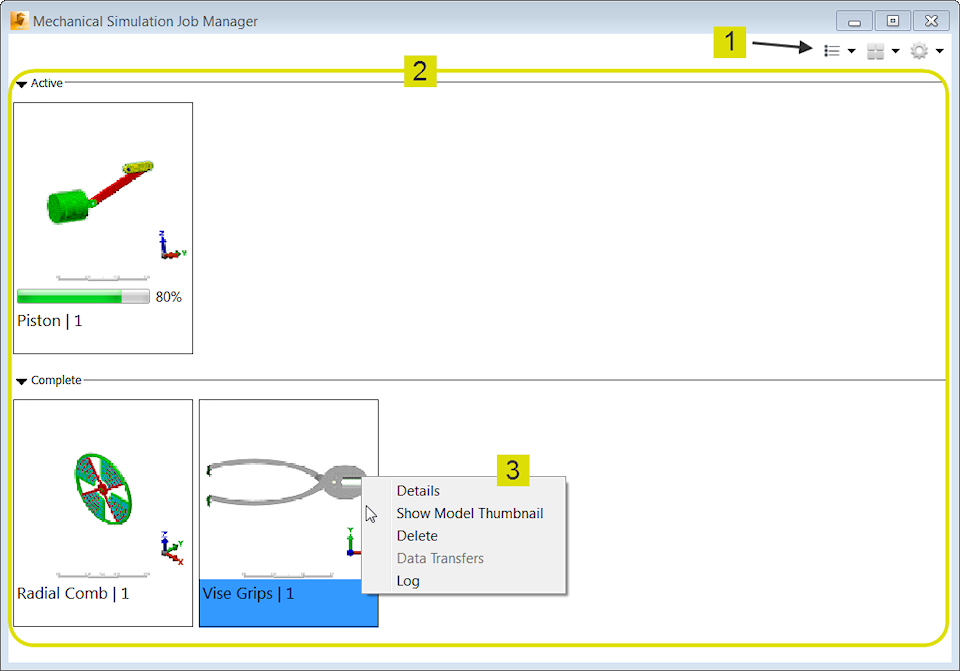 Figure 1: Mechanical Simulation Job Manager (Medium Icon View Mode)
