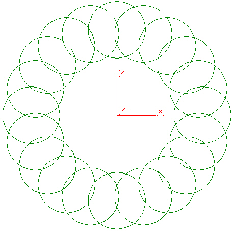 However, if you have the circle as shown in Figure 2 centered at (3,0,0) with the same settings for the centrifugal load, the load is based on rotation of the circle about the origin. In other words, the center of the circle moves in a circular path about the global origin. Figure 3 shows a graphical depiction of the path of the circle from Figure 2 under the specified centrifugal load.