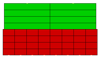 (a) The Model. A simple two-part model with the bottom surface exposed to a hot environment and the top surface exposed to a cold environment. Since the parts are practically the same width, this 2D model represents a 1-D heat transfer. |