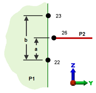 TY26 = TY22 + (a/b)(TY23-TY22) TZ26 = TZ22 + (a/b)(TZ23-TZ22) RX26= 0 R is rotation about X, Y, or Z at indicated node. |
