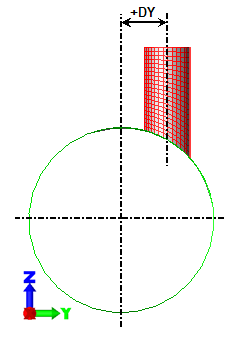 The Offset of nozzle specified using drop-down box on the Intersection tab is used to specify how to specify the offset out of the XZ plane. If the Distance option is selected, specify the location along the Y axis where the nozzle intersects the cylinder in the Nozzle's offset distance (DY) field. If the Angle option is selected in the Offset of nozzle specified using drop-down box, specify the angle at which the nozzle intersects the cylinder in the Angular offset of nozzle's axis (ADY) field. See Figure 1. Note that the nozzle is still parallel to the XZ plane. Note that this value follows the left-hand rule, so a negative angle rotates the nozzle about the +X axis.