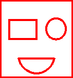 Imagine that the three holes in Figure 1(a) are to be filled with another material (and for discussion, assume that everything shown in the figure is drawn on part 1). A rectangle drawn on part 2 and over top of the rectangular hole in part 1 would fill the rectangular hole. A circle would be drawn on part 3 to fill the circular hole, and a semi-circle would be drawn on part 4 to fill the semi-circular hole.